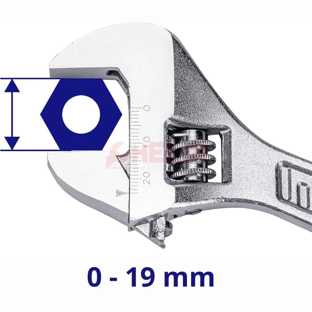 • ضبط سلس: فتحة قابلة للتعديل حتى 19 مم لتناسب مختلف الصواميل والمسامير.